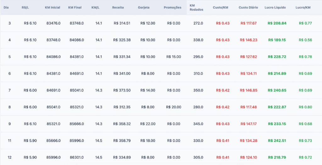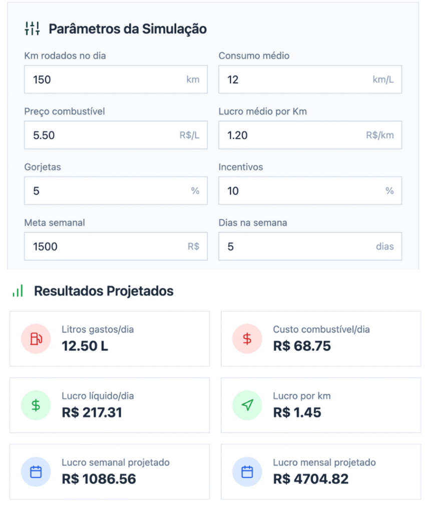 Digite seus km e ganhos, e descubra o lucro líquido real do dia sem precisar fazer contas